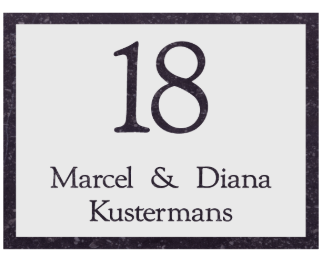 De hardstenen borden en nummers van de hardsteen serie worden met de hand gesneden uit hardstenen tegels van ca. 20 mm dik. Deze tegels hebben een structuur die zo uniek is dat elk naambord zijn eigen uitstraling krijgt. Doordat wij gebruik maken van natuurproducten, vertoont geen enkel naambord van Belgisch hardsteen dezelfde kenmerken.