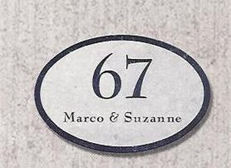Elk steen heeft een eigen karakter door zijn unieke structuur. Ons assortiment naamplaten en huisnummers wordt door de naamborden specialist op ambachtelijke wijze uit massief natuursteen vervaardigd.