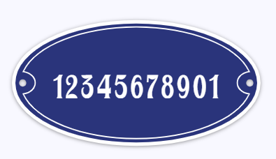 Ovaal emaille huisnummerbord met sierlijk kader en rand. li