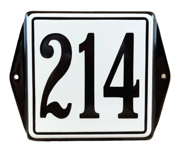 Emaille huisnummer oor ( 1,5 cm per kant) met kader. Geëmailleerd huisnummer met oortjes en kader ertussen, ideaal voor jaren 30 woningen. Verkrijgbaar in diverse kleurcombinaties. Emaille huisnummers zijn duurzaam, weerbestendig en nostalgisch van stijl. Geeft elke gevel een klassieke, sfeervolle en elegante uitstraling.