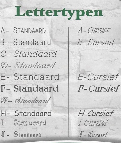 Messing naambordje wordt aan de voorzijde gegraveerd en zwart ingelakt.  De tekst wordt gecentreerd. U kunt kiezen uit verschillende lettertype ( zie onder)