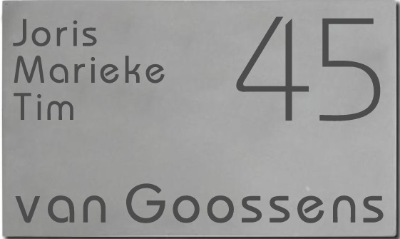 Betonnen naamborden worden door onze nieuwste technieken gemaakt. Uw tekst is verkrijgbaar in de kleuren wit. zwart of beton grijs.