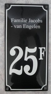 -Handgemaakt, -traditioneel gebakken. Vele variaties in kleur en lettertype mogelijk. Het huisnummer is altijd in het sier lettertype.