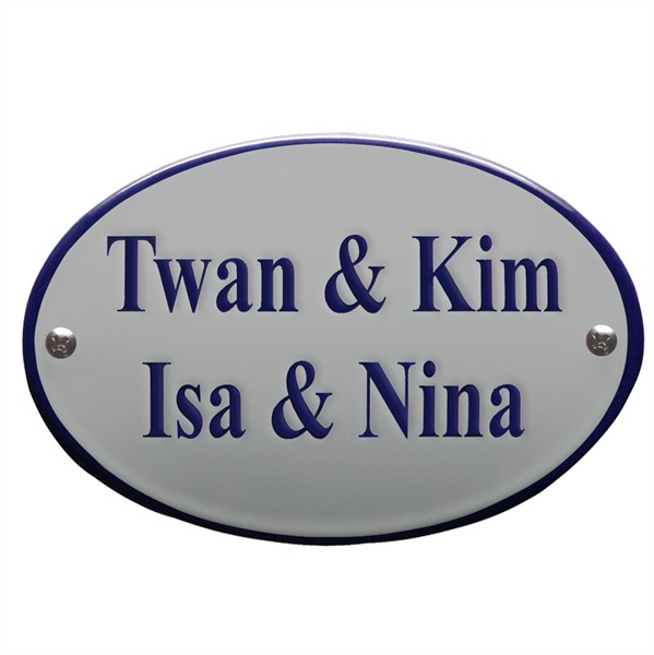 Emaille naambordjes in ovale vorm licht gebold.Emaille naambord met rand. Deze krijgt dezelfde kleur als uw tekst.