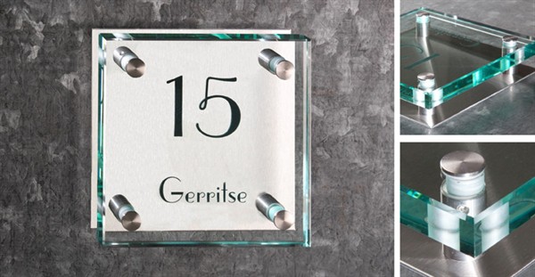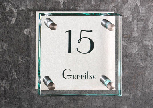 Naamborden van glas, glazen naamborden,glazen naambord, u vindt het allemaal bij de naambordensite!