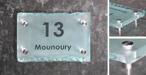 Glazen naamplaat : Bij dit glazen naambord is gebrokkeld glas gebruikt in een matte uitvoering. Hierdoor komt uw naamplaat helemaal tot zijn recht.