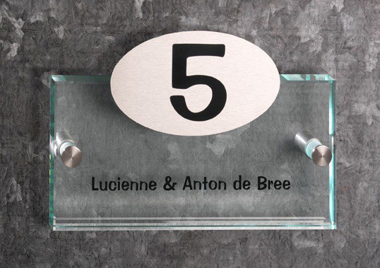 Het glas van dit naambordje is extra dik. De RVS voorplaat heeft voldoende ruimte voor uw huisnummer