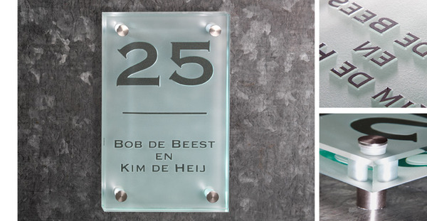 U kunt kiezen uit gematteerd of helder glas. Tevens keuze uit lettertypes, tekstkleuren en uitlijning.