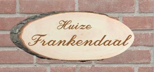 Uw boomschijf naambordj heeft een schorsrandje. Uw boomschijf naamplaat wordt geheel gelakt. Door lasergravure wordt uw tekst erin gebrand.