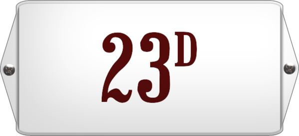 Emaille huisnummer met oor. Geëmailleerd en handgemaakt, met oortje van 1,5 cm. Verkrijgbaar in diverse kleurcombinaties. Duurzaam, stijlvol, klassiek jaren 30 ontwerp dat jarenlang mooi blijft aan elke gevel.