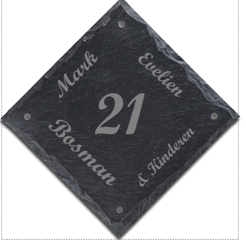 De tekst/ huisnummer wordt in het leisteen naambord gelaserd. De kleur wordt automatisch grijsachtig.