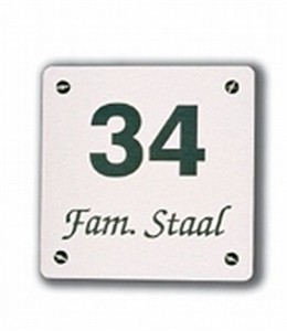 Uw naam wordt met onze ultramoderne lasermachines in de roestvrijstalen plaat gebrand (altijd zwart), u bent zo verzekerd van een kwalitatief goed en duurzaam product. Keuze uit 3 verschillende lettertypen.